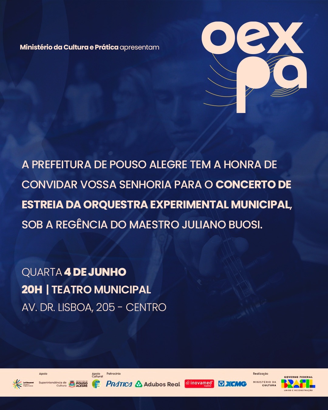 Informações sobre o concerto de estreia da Orquestra Experimental Municipal de Pouso Alegre